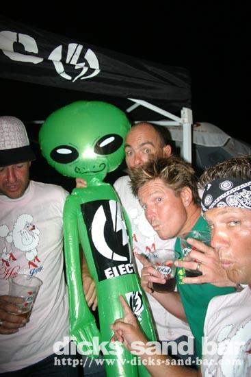 Saturday / Samedi 2 July 2005 ; Dick premiered his latest video featuring the Electric Crew....who chose Dicks Sand Bar for their last party night out of their weeks seminar in Hossegor....Rock the Bolt!!