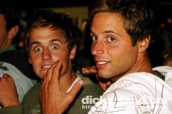 Sam/Sat 4 Oct 08...Amazing Sunset,then a Big Night!JC avec son equipe de Tyrosse,loads of Aussies,Germans & Brits,Toff & Ludo,a million Mojitos,Claire rockin Le Tigre,Mag,Amelie,Marie...en plus super surf!!!