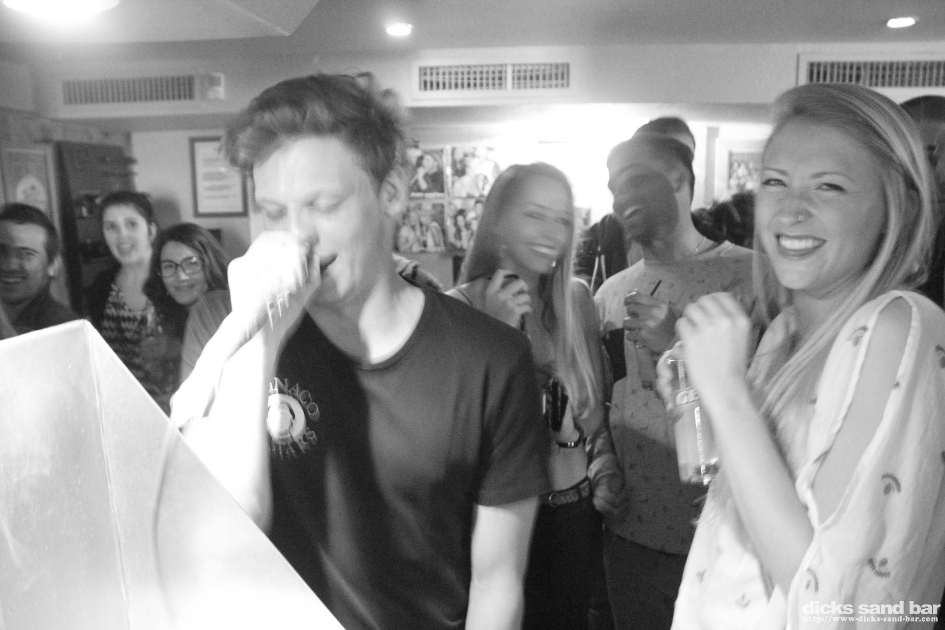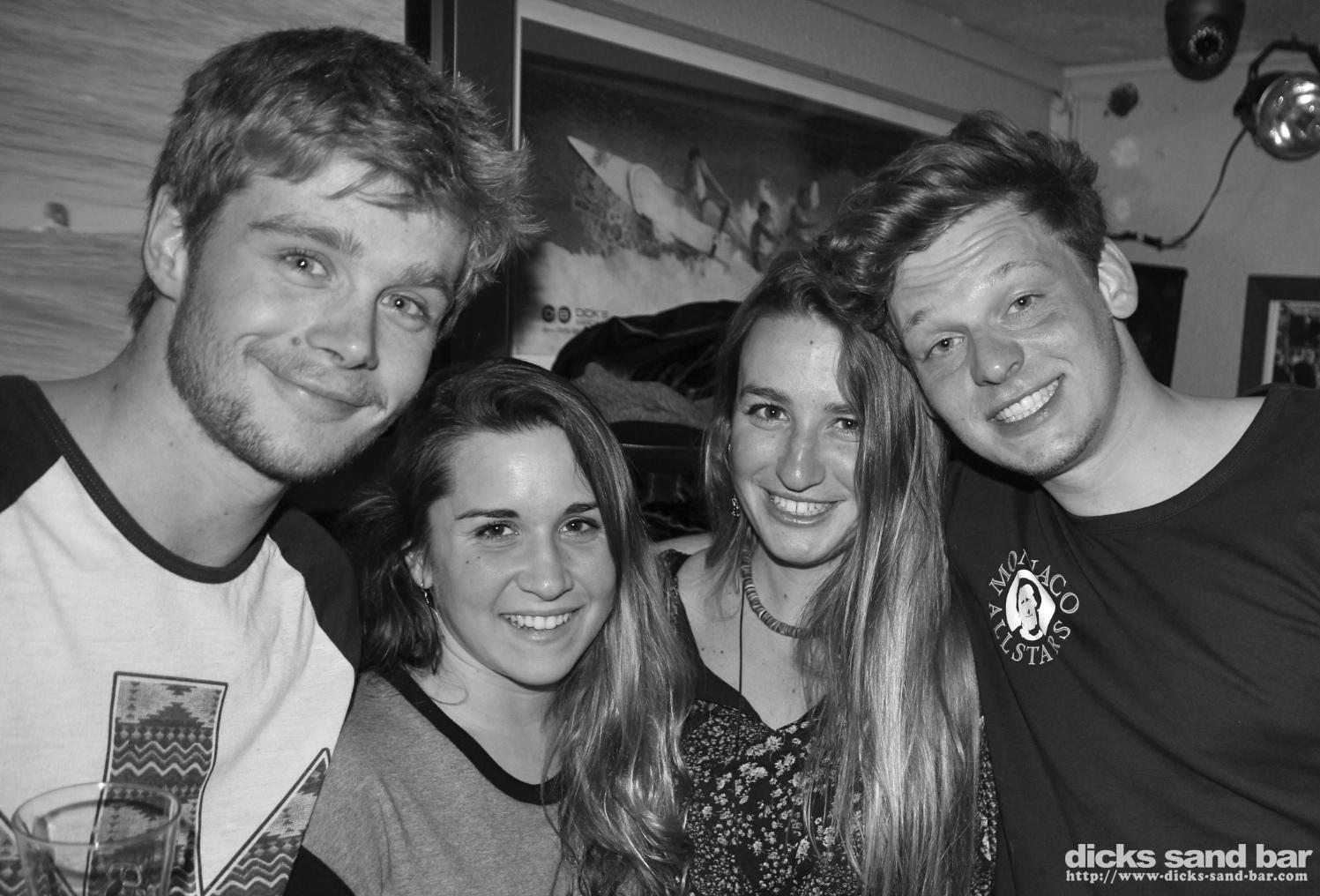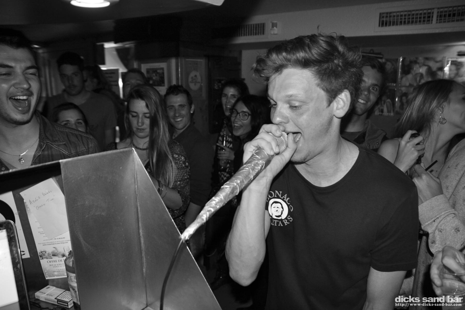 Easter weekend Saturday / Samedi 4 April 15 2015...just when i was wondering when things would start getting busier we got our asses kicked this weekend (in a good way)...Saturday was madness Sparta Style...les gars de Gers (Gersiers?) en forme, et Alix m'a promis bcoup cadeaux...on vera..the aussies were in Bayonne eating ham and sinking red plonk before arriving all roused up and things went down hill from there....Andrew and Nick were in a particularly bad way the next morning...plus some German dude called Marc was blowing the roof off with his karaoke Black Eyed Peas thing.. then after closing the bad things started happening all over town...including my garden...but thats for another website, not a wholesome family place like this one....photos: David P // Contact: dave@dicks-sand-bar.com