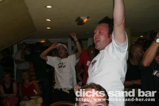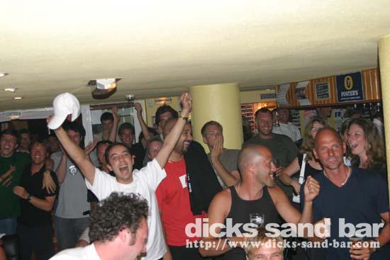 13 June - we were really full at 8.45 when we showed the England vs France football match on the plasma screens. We thought it would quieten down after the match, but it went ballistic. Much singing of national anthems and we ran out of beer!