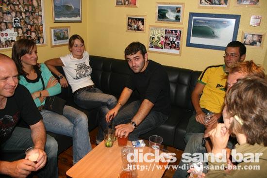 Sun / Dim 17 Sept 06 .. Whew it never stops...Cockney Geeza James was leading procedings downing beers with the local rugby team,Howey and co were going hard on the terrace,Manon had her birthday and Joanna sand with the crazy girls for her last night!!