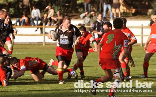 Sun / Dim 9 Jan 2011...Hossegor Rugby v St Julian...beau temps au stade d'Hossegor mais avec de nombreux blessés au squad donc c'etait un match difficile pour notre équipe ! Dicks equipe men Manu Azdine et Peyo, et bravo a Manu qui débute à 9! Si vous voulez les photos en hautes definitions n'hésitez pas a m'envoyez un mail avec le numéro de la photo que je vous l'envoi !