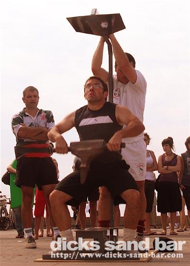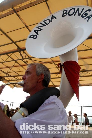 Roland is the boss of the RockFood Bar, and he organised this afternoon some fun stuff here on the square, all with a kind of SouthWest France / Basque vibe going on... so there were strong man farmer competitions (with chicks in bikinis!), some cute piglets running around each representing a bar on the square here, and this cool Basque brass band kickin ass.... it sounds wierd but it was good fun!