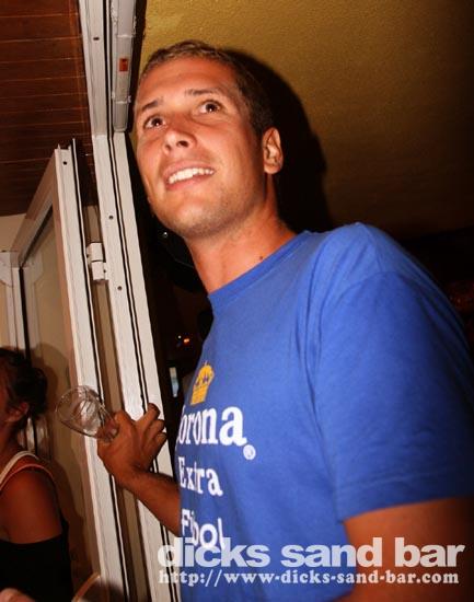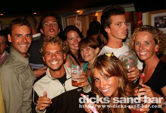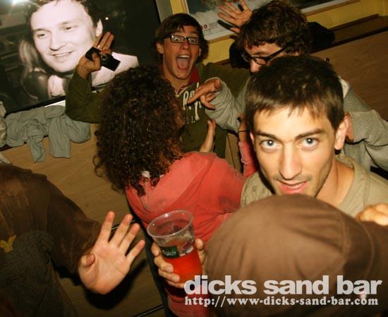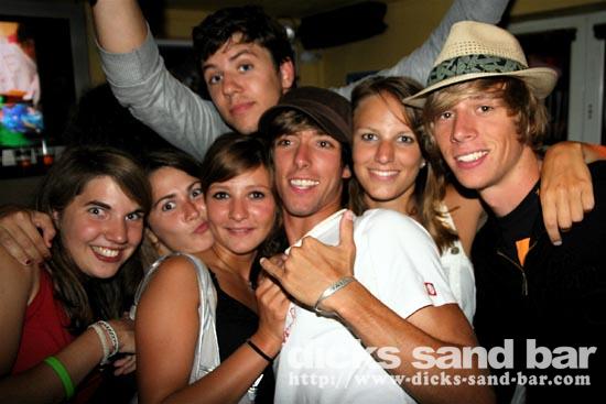 Jeud/Thurs 14 Aout 08..Like Jack Nicholson in The Shining,the bad weather outside had some wierd cabin fever effect!Everyone was crazy!Mr Landes cassé record shooters;Lost Oliv battu le record pichets(48?);Gabe & Lauren Davies partied for Beccas BDay!