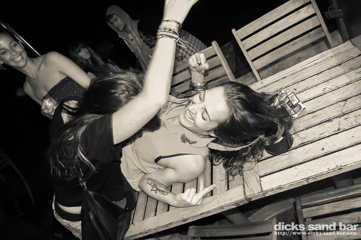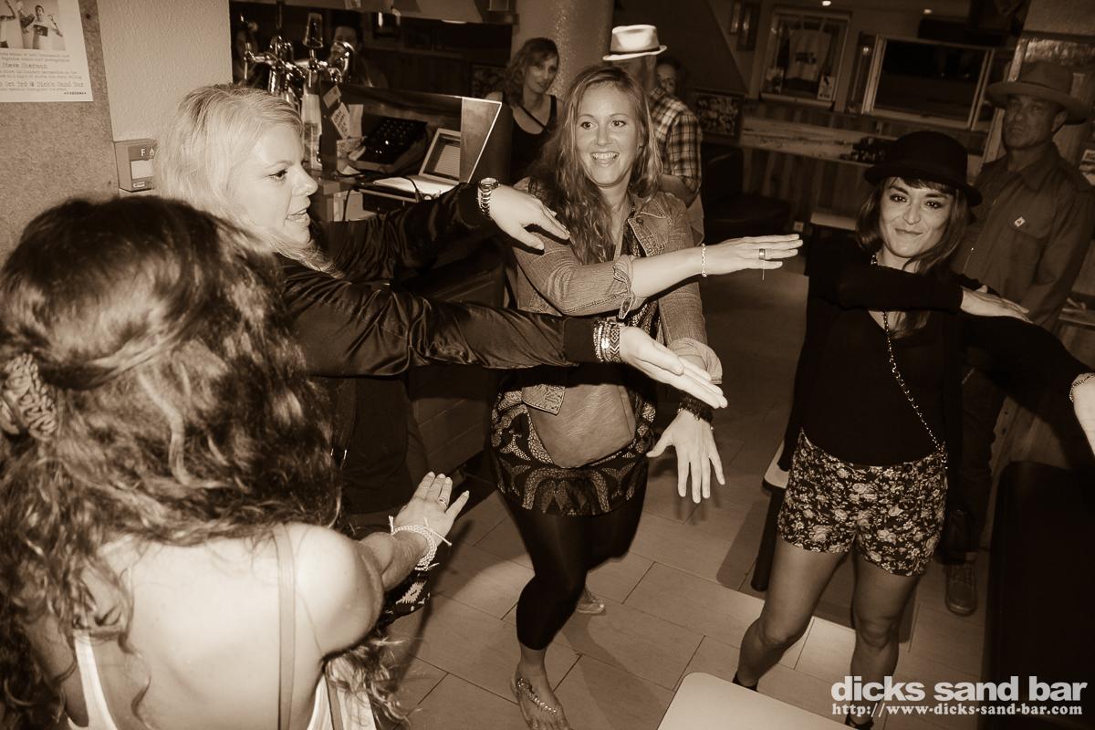 Tuesday / Mardi 2 & 3 Oct 2013..We had Christine Farr present some of her Australian inspired Art in the bar accompanied by a didgeridoo vibe which was fun. Then later Reva got all Village People with Val Hugo Boss & the crazy Swedish ladeeez, the later Margot celebrated her birthday, and her and her buddies really are crazy people, we also had a fun night with Surf / Skate photographer Steve Sherman doing a slideshow featuring his coverage of Parko's world title won at Pipe last December,and of course the ensuing party was pretty full on....photos: David Potter & Kene O' // Contact: dave@dicks-sand-bar.com