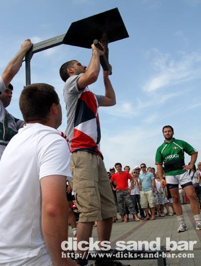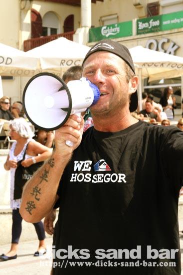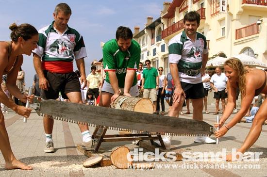 Roland is the boss of the RockFood Bar, and he organised this afternoon some fun stuff here on the square, all with a kind of SouthWest France / Basque vibe going on... so there were strong man farmer competitions (with chicks in bikinis!), some cute piglets running around each representing a bar on the square here, and this cool Basque brass band kickin ass.... it sounds wierd but it was good fun!
