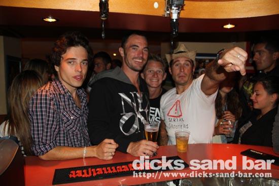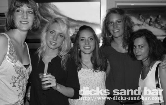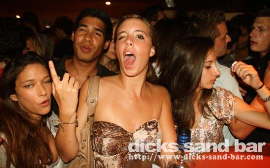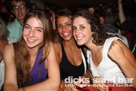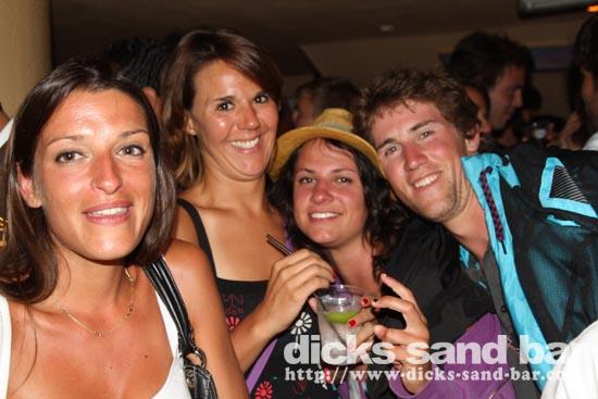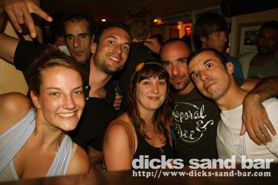 Mardi / Tues 3 Aout 2010... Laure & the "greek dance" girls are back and get things started, then Nico au micro singing Joe Le Taxi, again millions of "Toulousains" in the bar going crazy... pretty chicks everywhere, Fanny & les filles and Aurelias emotional goodbye (see you in 3 wks), cute tall Aussie chicks, Hugo & the boys shooter kings..... Dicks Sand Bar is now at full alert....Summer is well and truly on!