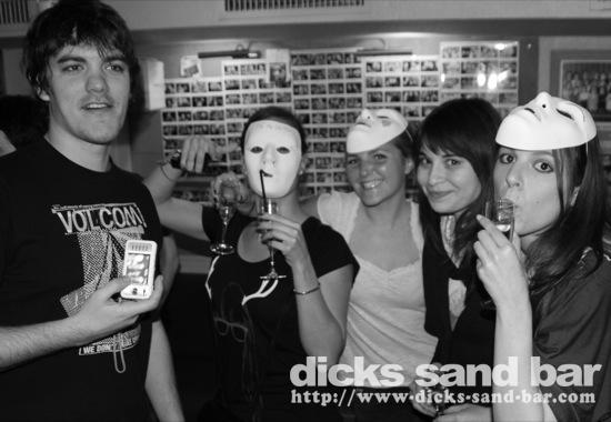 Vend / Fri 21 Jan 2011... Happy birthday Camille (dim) & Laura Minnie mouse qui sont belle avec leurs masques mais catastrophe au micro....les moto bikers partout en preparation pour les courses "quad" samedi et moto cross dimanche. Marie & Axel arrivé, Famille Saucaz rock n roll, les gars cuir cuir moustache, Gaelle Greek musique, Stef voisine elle folle.....cool night!