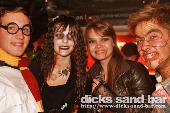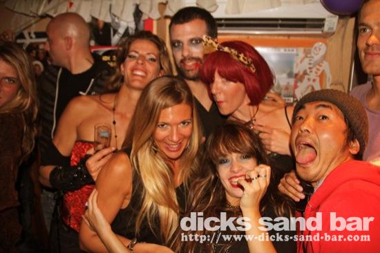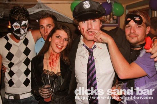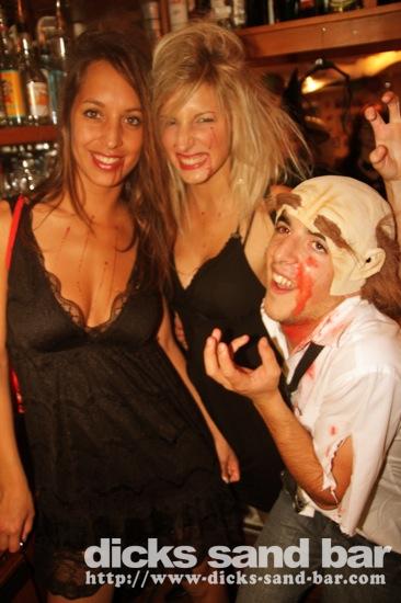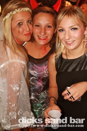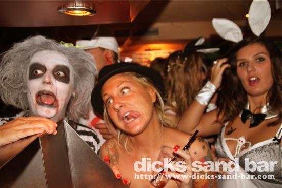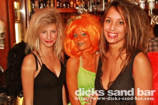 HALLOWEEN Lundi 31 Oct 2011....Chaque annee vous nous surprenez avec votre enthousiasme et vos costumes magnifiques! Encore une superbe soiree Halloween avec plein de gens qui faisaient trop peur! Ils sont venu de Montauban, Toulouse, Bordeaux, Paris pour lancer le feu avec les locaux....les sorcieres & diables partout, il y avait un psychopathe avec sa tronconeuse, Les Playboy bunnies avec Hugh Hefner, Remy & Sylvain etait tres intimes, Max Hugo et al Harry Potter style, Dick a tourné partout filmé et cette semaine Dan va vous faire une autre superbe video montage, Anniv Alex Belge qui faisait tres peur avec Jerome le Demon, Thierry & son frère se deguisaient ensemble pour la premier fois depuis on a ouvert le bar!Merci les gars!!! Caroline B & ses copines avec l'accent Montauban, Baptiste Tactique Gendarme, Amelie S - Melissa- Maud Danatia Marie Michael Jackson super mignonne phantoms, Vincent Ghostrider, Nick & Buckle looked good as usual with special mention going to Nicks devil makeup! MERCI ENCORE POUR VOS DEGUISEMENTS - TROP FORT BRAVO!!! ..photos: Dr Dan & Adolf Potter... // Contact: dave@dicks-sand-bar.com
