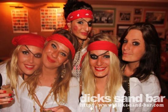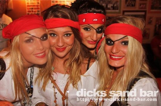 Jeudi Thurs 7 Juin 2012 PirATeS PaRTy!!!...Captain Jack Sparrows partout et les filles s'habilléé mega chic a le look Pirate! Crawshays Rugby Team (Pays Galle) pop in to say hello and scare the local chicks with their massive biceps. It was HardcORE; Melissa has a bust leg but Charlotte and their german girlfriend took good care of her, les Sisters Lauren & Chacha et ses copines ultra super pirate girls ..photos: David P Kene Dan Dys etc etc // Contact: dave@dicks-sand-com