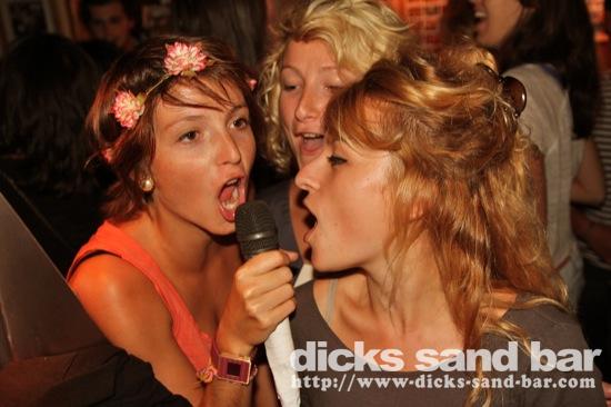 Sam / Sat 4 August 2012...Happy Birthday to Melissa & Bobi, Vborg Manu Mr Landes Seb Margot au micro avec resultats mixtes, Caroline B & her Montauban buddies back in town and turning all the boys heads, les Mns Deguisee pour les Olympics, Abba Girls are mad for the karaoke, Karen & Julie Anastacia style, another super hot evening with les bonbons qui collent...photos: David, Kene, Romain // Contact: dave@dicks-sand-com