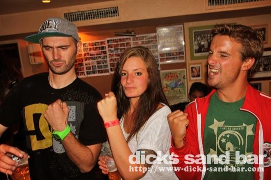 Dim / Sun 2 Sept 2012 Latino 3... Santa Cruz Bodysurfers Josh & Tom back in town and ready to get wet, Antoine anniversaire donc shakers sur les oreilles, Bibbin's Stag weekend continues Hossegor style with Mark Hiseman & the boys getting messy with big Jaque and his little buddy, Kats & Emi party with Momo dehors dans notre Bodeguitas Bar, Manon Margaux & Carla Clara look like Sandy at the end of Grease when they sing 'Youre the one that i want', Greg & Kris karaoke disaster, Jaja has a hairy ass, and Tomas had a bucket on his head to protect him from the incessant salsa music........photos: David, Kene, Romain // Contact: dave@dicks-sand-com