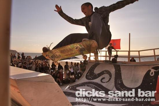 Dim / Sun 30 Sept 2012 DC Skate show...The feeling in town so far this year for the QuiK pRO Comp has been kind of anticlimatic....as in Septembers past theyve had huge mega concerts and Tony Hawk shows and dudes on motorbikes etc, but this year the concert was in Bayonne (??) and they've built a mini ramp on the square where there are daily skate sessions from 17h-19h.This Sunday the sun was out and the surf was small so everyone cruised down to the square to watch the guys do their thing...and Reva took some photos ...photos: Reva Skrillex // Contact: dave@dicks-sand-com