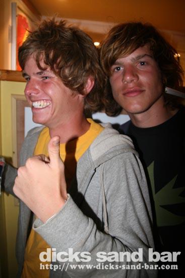 Vendredi / Fri 17 Aug 07; Luke Munro & Kirk Flintoff popped in to DsB as pro surfers arrive for the Rip Curl Pro.Also there were these pretty Swedish ladies everywhere lighting up the bar.....tak! DsB the place to be summer 2007!!