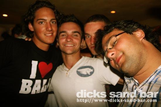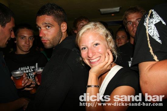 Lundi / Mon 4 Aug 08...Streuth!The busiest Monday night ever!Beautiful sunset,then wall to wall party on the square.Du monde partout et la folie au DsB...Clem & Christelle au shooters,et l'equipe de RipCurl eu feu!!!Mardi soir SUPERHERO PARTY!